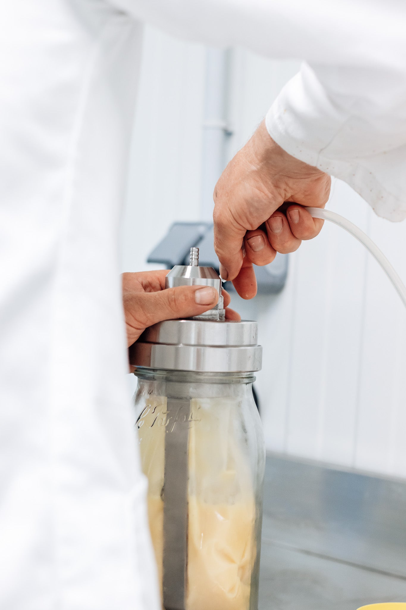 Les larves sont extraites des cupules puis la gelée est aspirée dans une poche avant son conditionnement, dans des conditions d'hygiène strictes. La gelée est ensuite conservée au réfrigérateur entre +2°c et 5 °c.